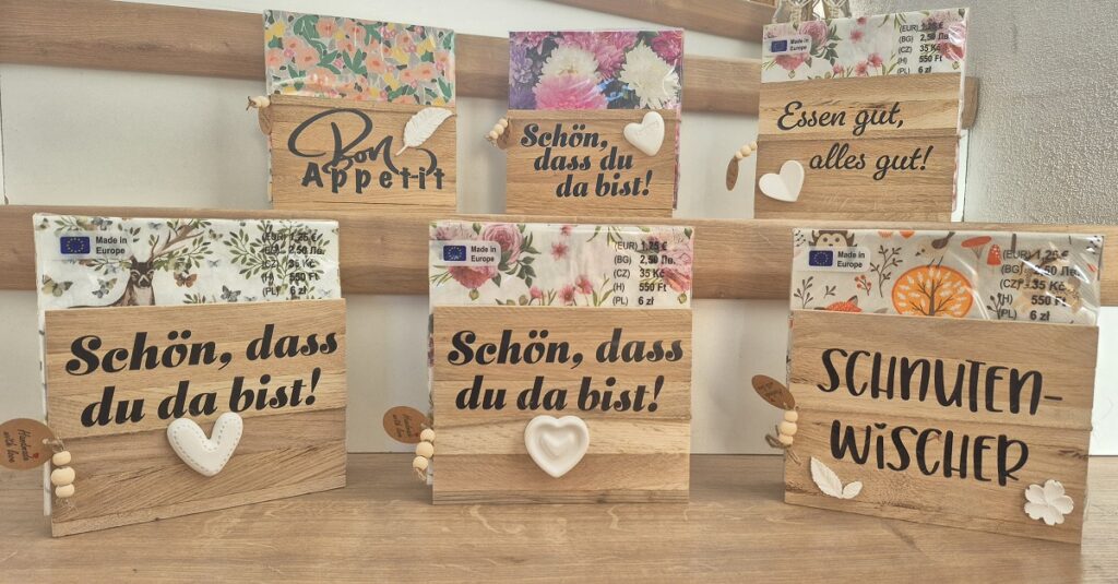 In dieser Kategorie findest du diverse, nützliche Deko aus Raysin und Holz, wie z.B. Brillen-, Servierten- oder Notizblockhalter. Viel Spaß beim stöbern. Die einzelnen Stücke können selbstverständlich auch personalisiert werden.