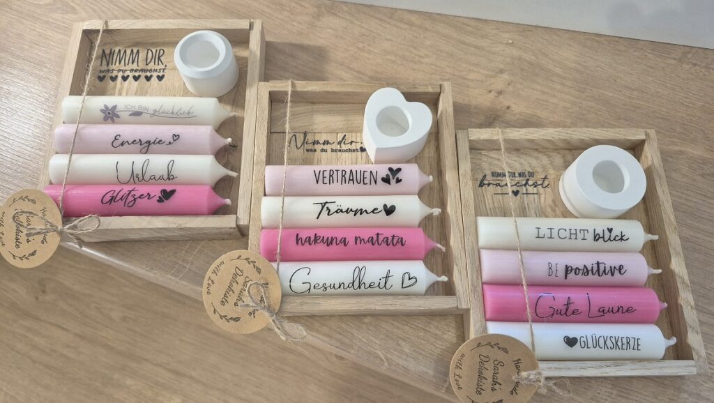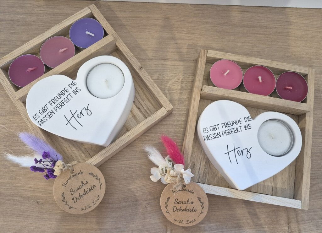 In dieser Kategorie findest du in liebevoller Handarbeit gefertigte Deko aus Raysin und Holz zum Thema Liebe und Freundschaft. Wenn du auf der Suche nach einem einzigartigen oder personalisiertem Geschenk für einen lieben Menschen bist, dann schreib mich gerne an und teil mir deine Wünsche mit.