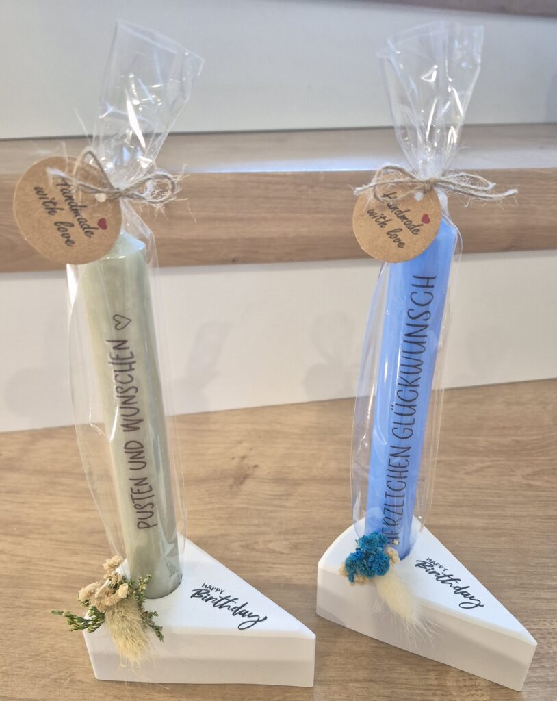 Kerzen sind natürlich auch in anderen Farben erhältlich, das Kerzentatoo ist ebenfalls auswählbar.